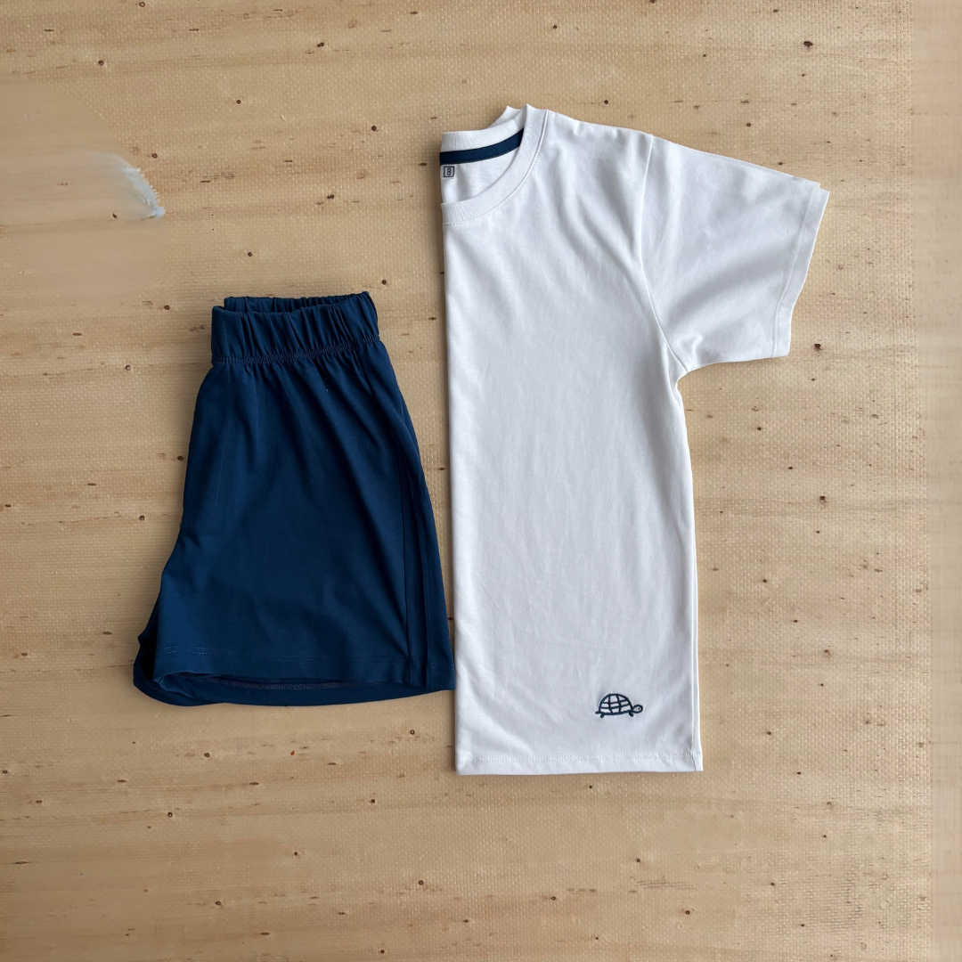 Polo manga corta en algodon con short en algodon con cintura elasticada